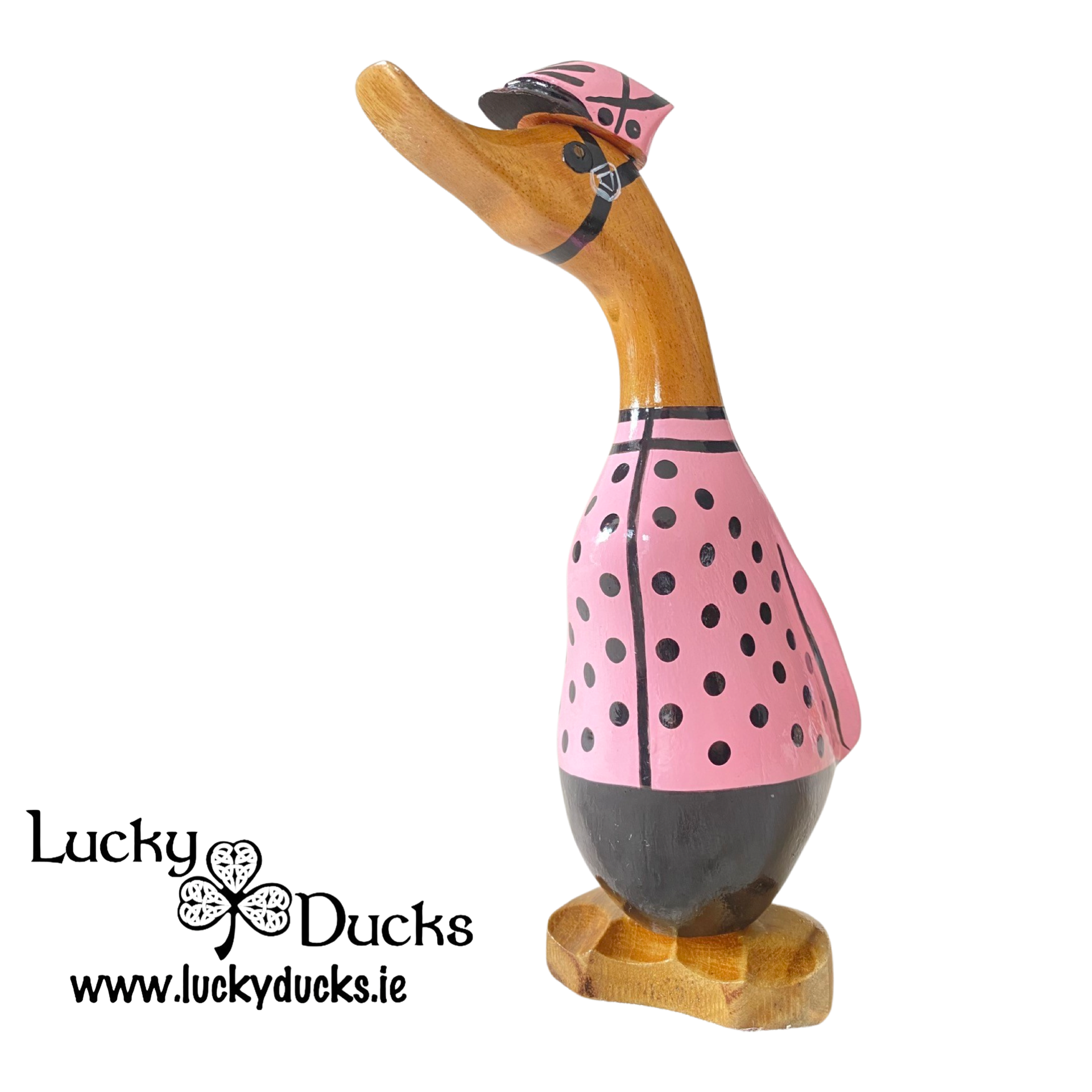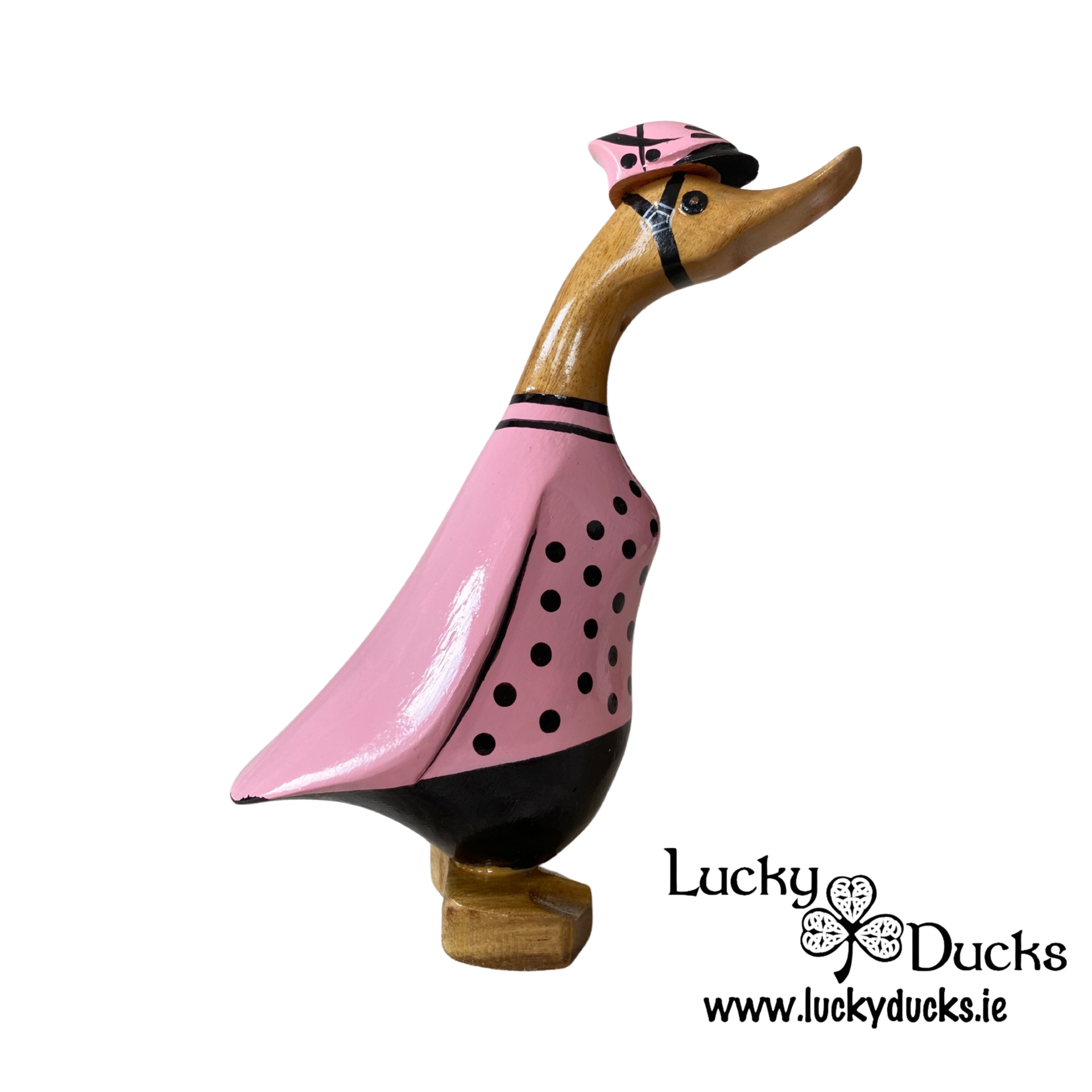 22 cm hand crafted and hand painted Cycling duckling proudly waring the Pink jersey. Ideal gifts for any cycling fan.